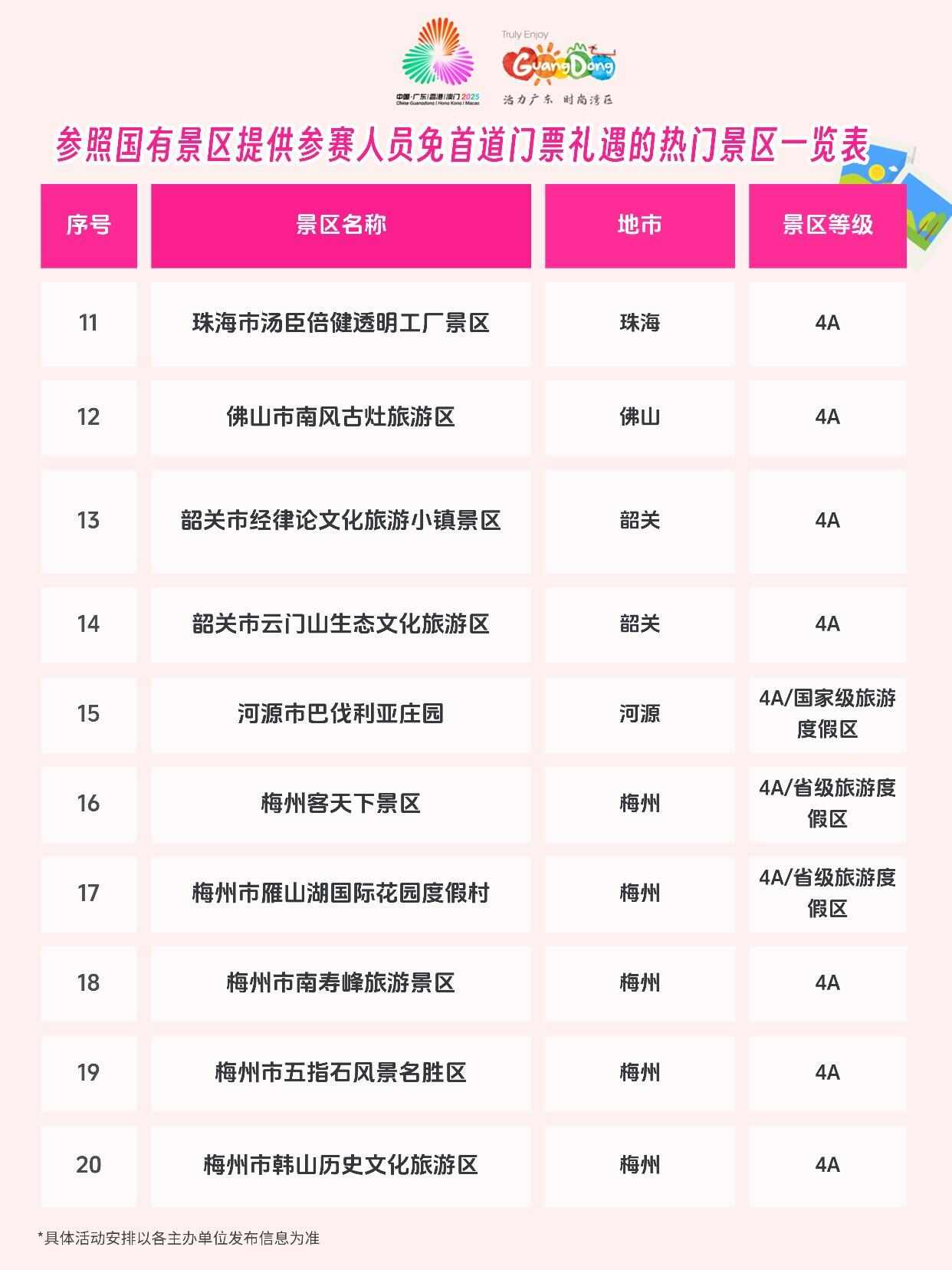 除国有景区外,省内近40家高人气的旅游景区及省级以上旅游度假区也积极响应,为参赛人员提供同等的首道门票免费礼遇。