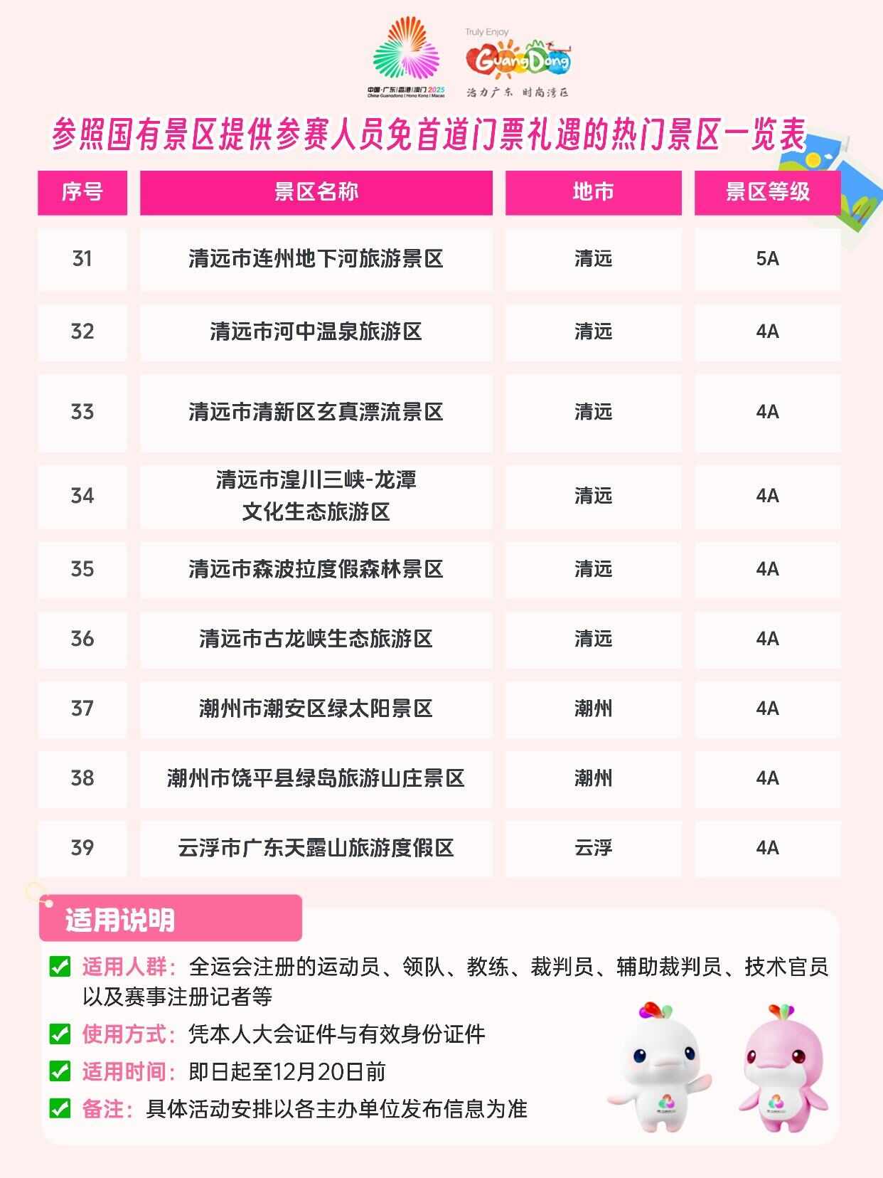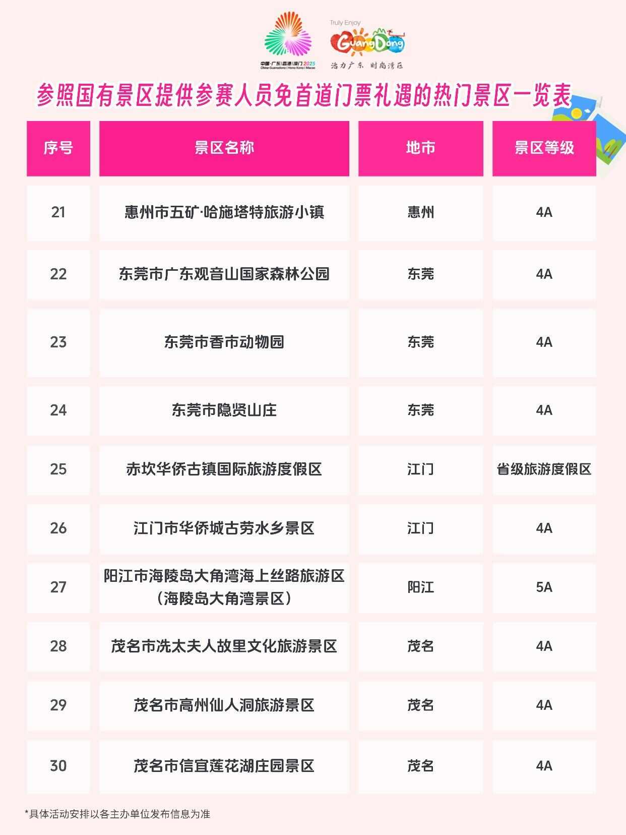温馨提示:活动名单仅供参考,各景区在全运会期间对观赛人员和广大游客均有不同程度的优惠,具体优惠规则还请关注各个景区发布的公告。