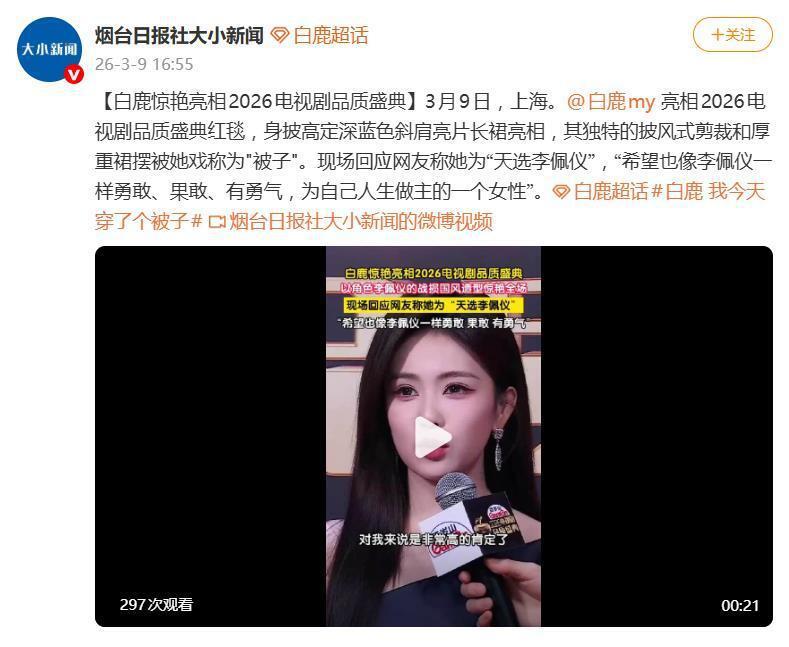 除了造型引发的欢乐讨论,白鹿在现场的回应也展现了清醒的一面。当被问及网友称她为“天选李佩仪”(其饰演的某个角色)时,她表达了对角色的认同,并希望自己能像角色一样,“勇敢、果敢、有勇气,为自己人生做主”。这番表态,让她在红毯的幽默之外,多了一份演员的深度。