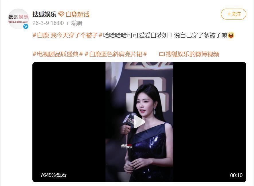 据 3 月 9 日报道,2026 电视剧品质盛典红毯上,白鹿一句“我今天穿了个被子”的幽默自嘲,瞬间引爆网络,风头甚至盖过了她身上那件货真价实的法国高定礼服。当其他明星还在努力诠释“高级感”时,白鹿已经用最接地气的比喻,把自己和热搜第一牢牢“裹”在了一起。