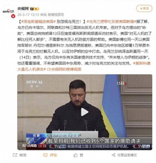 据了解,乌方已向卡塔尔、阿联酋和沙特三国派出反无人机专家。但对于乌方提出的“协助”,美国总统特朗普13日在接受福克斯新闻频道采访时表示,美国“对无人机的了解比任何人都多”,不需要有关无人机防御方面的帮助。美国彭博社同一天以美国陆军部长丹尼尔·德里斯科尔为消息源报道称,美国已向中东地区部署1万架原本用于乌克兰的拦截无人机,以应对伊朗的空中打击。