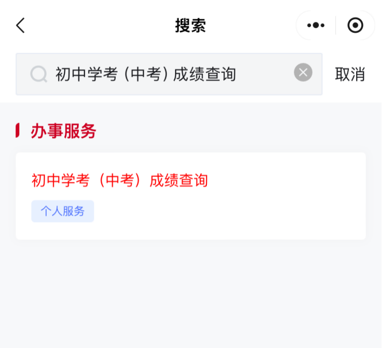 扫描海报中的二维码,进入微信、支付宝、百度“京通”小程序,以微信“京通”小程序为例。在首页搜索栏中输入“初中学考(中考)成绩查询”后点击进入查询页面,输入准考证号或身份证号、报名号,点击“查询”即显示中考成绩(如下图所示)。